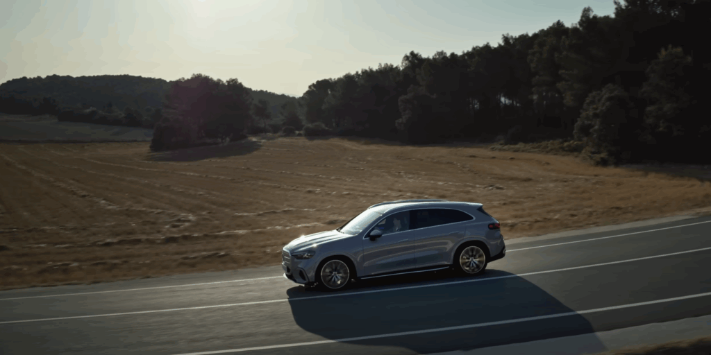 外観全体は、メルセデスの電動車にありがちな単調な卵型フォルムとは一線を画していて、新開発のMB.EAプラットフォームによりホイールベースが延長され、力強いプロポーションを保ちながらも流麗なラインを描き出すことに成功しています。フラッシュ式ドアハンドルや空力最適化されたエアサスペンション、そしてSUVとしては驚異的なCd値0.26という空力性能も見逃せません。重厚感と未来的なシルエットが絶妙なバランスで共存しており、「伝統」と「革新」が同じボディに宿っています。