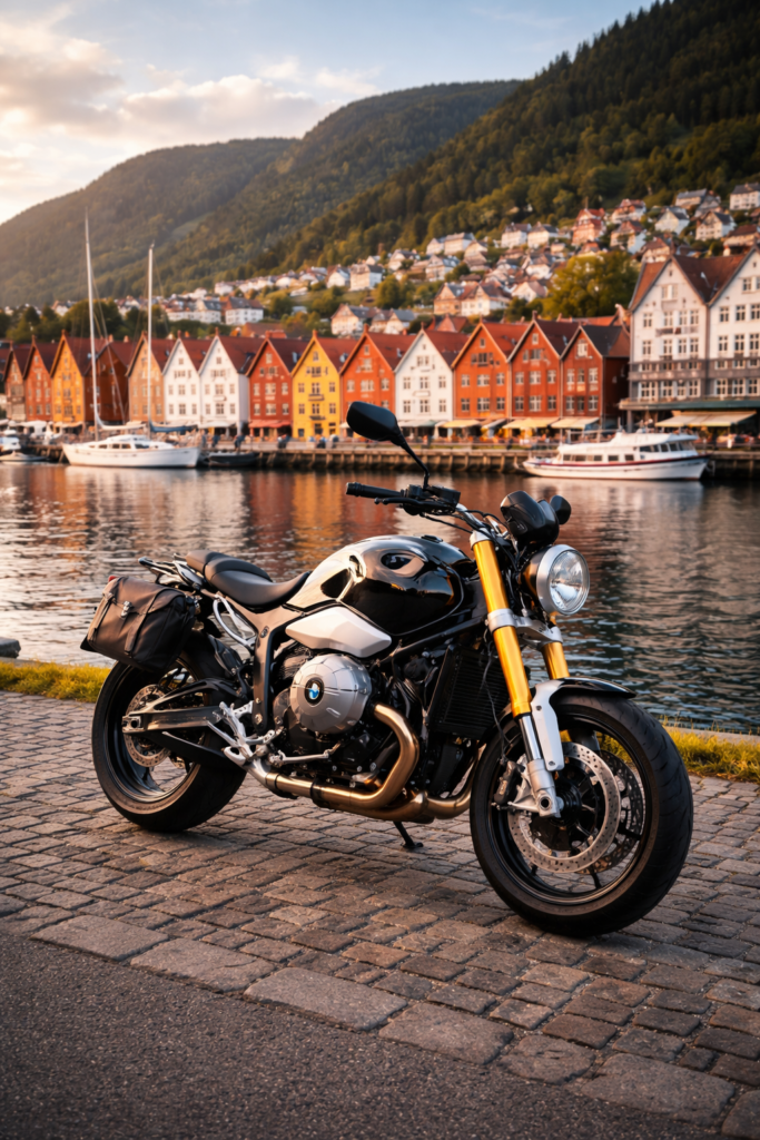 ベルゲンには、BMW R-nine T、すごく似合うよ」